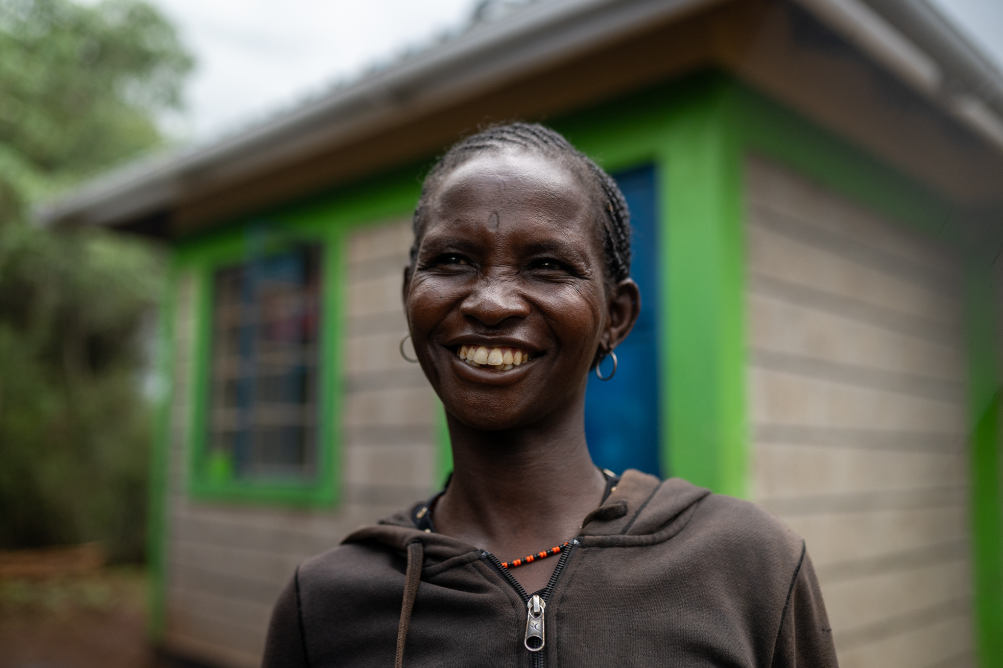 Benta ,36, a hair dresser, sprays a customer’s hair after plaiting. 80% of women in Kibera sustain their livelihood with self-employment. Factors such as high rates of unemployment and lack of proper education for women and girls which fetch low paying jobs that cannot sustain livelihoods has led to existence of entrepreneurial ventures allover Kibera slum. December 6th, 2021.